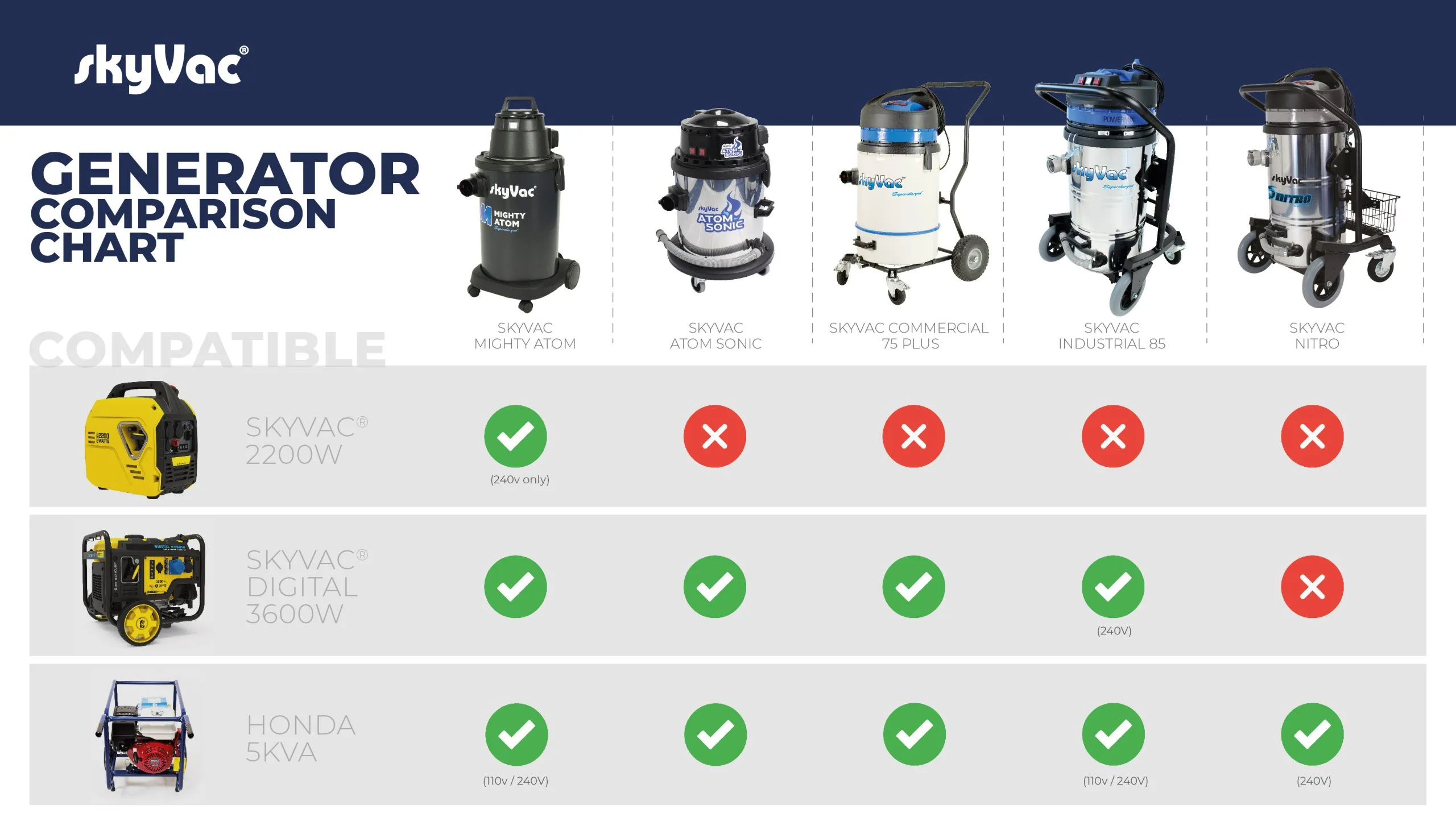 Want power on the go? we have a selection of generators available for our vacuums.